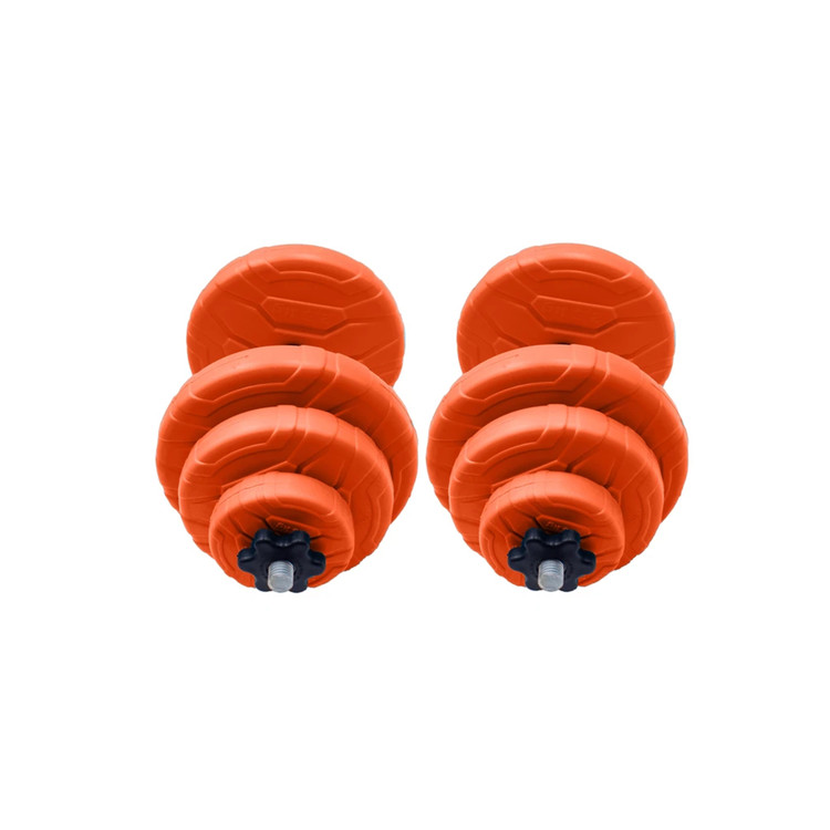 این ست کاملا متغیر وقابل تنظیم ، شامل 4 عدد صفحه 2/5 کیلوگرمی 4 عدد صفحه 1/5 کیلوگرمی و 4 عدد صفحه نیم کیلوگرمی از جنس لاستیک سخت (ابونیت) میباشد . با توجه به جنس خاص دمبل ها که با اکسید آهن چگال شده وزنه ها نشکن و کاملا مقاوم به ضربه و مقاوم به دمپینگ میباشند .
