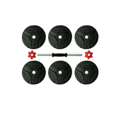 ست فوق همراه با یک جفت دسته دمبل آهنی با چهار عدد مهره ستاره ای فلزی با روکش از جنس پلی پروپیلن میباشد .