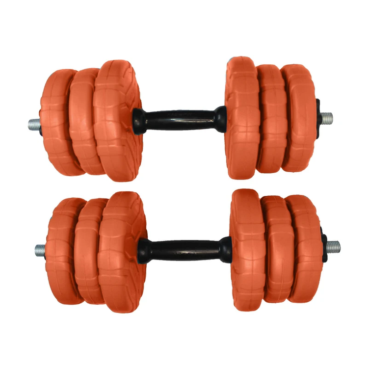ست فوق همراه با یک جفت دسته دمبل آهنی با چهار عدد مهره ستاره ای فلزی با روکش از جنس پلی پروپیلن میباشد .