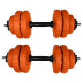 ست فوق همراه با یک جفت دسته دمبل آهنی با چهار عدد مهره ستاره ای فلزی با روکش از جنس پلی پروپیلن میباشد .